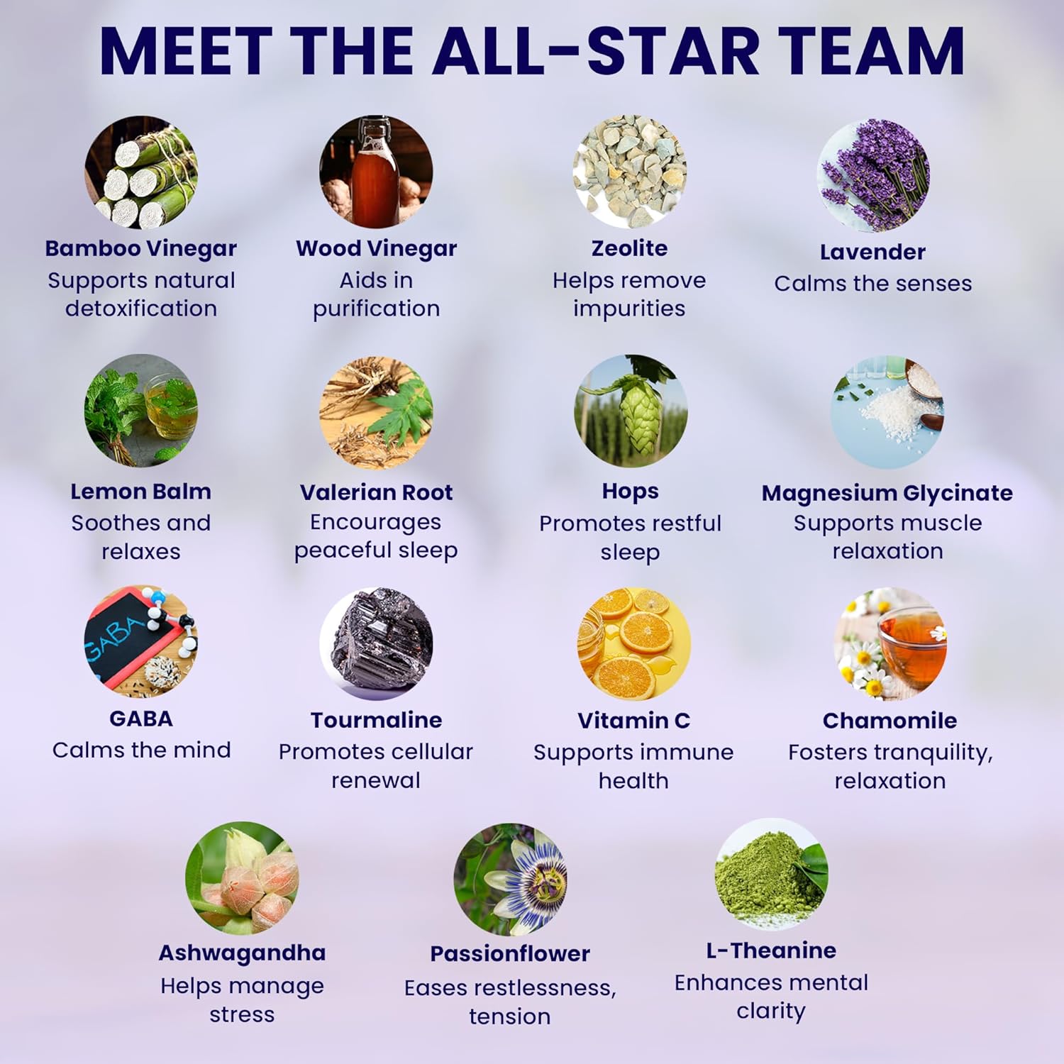 Calmyria®, powered by Volcanic Zeolite, Tourmaline, and Magnesium, helps detox, relax, and restore while you sleep—so you wake up feeling lighter and recharged.
