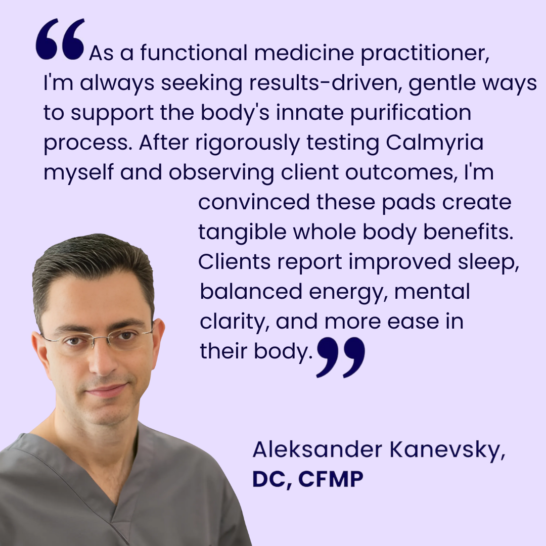 Calmyria® is a natural detox foot pad infused with Volcanic Zeolite, Magnesium, and Calming Botanicals to draw out toxins, promote relaxation, and enhance sleep quality while you rest. Simply apply before bed and wake up feeling refreshed and rejuvenated.