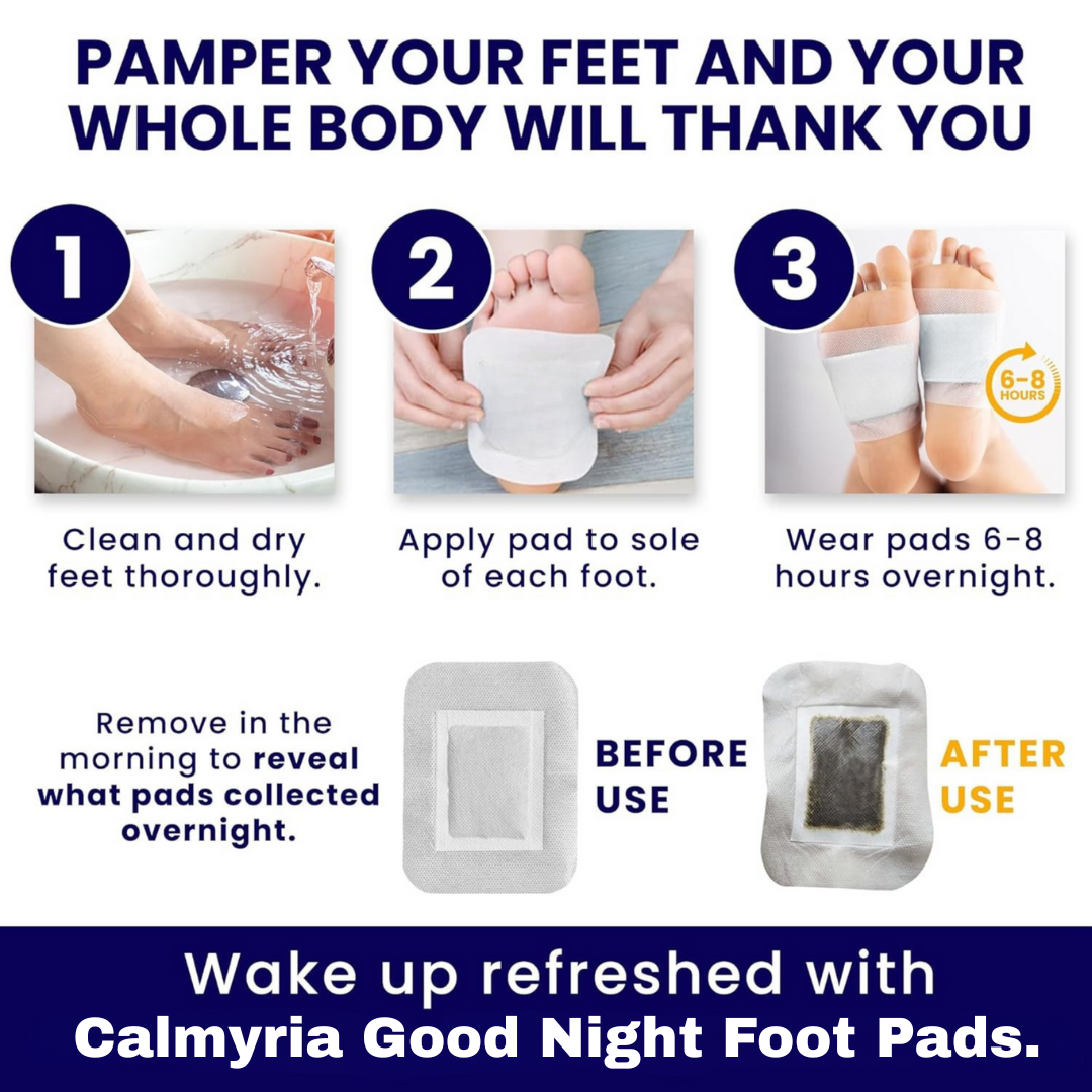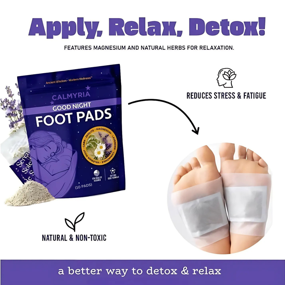 Wake up refreshed and toxin-free with Calmyria® Detox Foot Pads! Infused with Volcanic Zeolite, Magnesium, and Calming Botanicals, they support detox, relaxation, and deep sleep—all in one simple overnight application.
